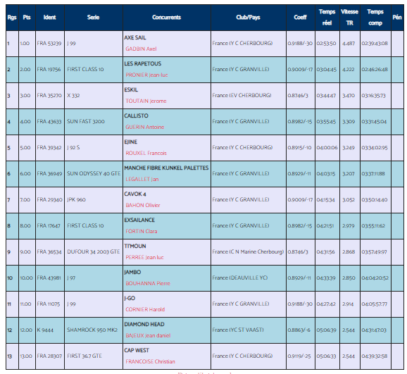 RESULTATS REGATE LA COTENTINE MODERNE