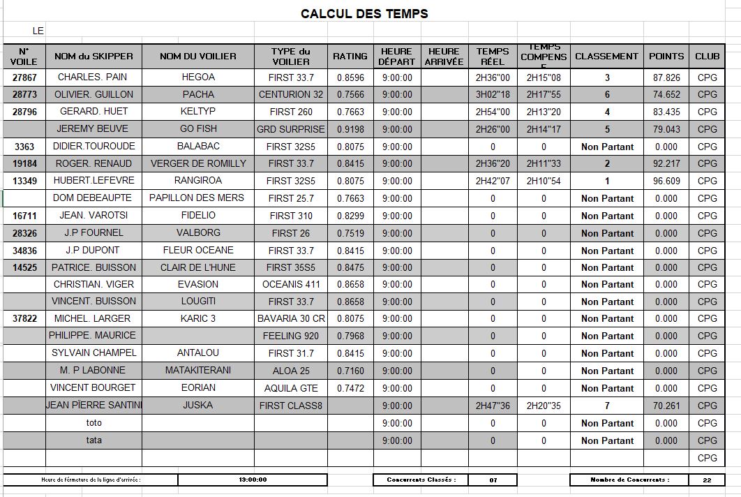 CALCUL TEMPS REGATE LES VERGERS DE ROMILLY