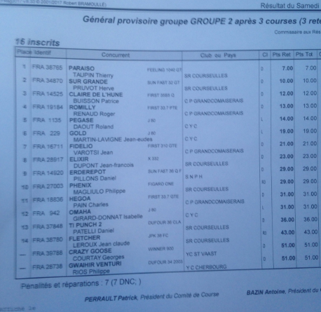 Résultats Coupe de Normandie - 3 courses - groupe 2