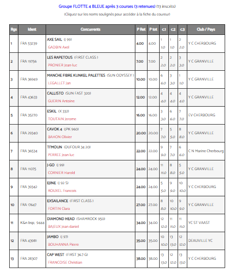 RESULTATS REGATE LA COTENTINE MODERNE
